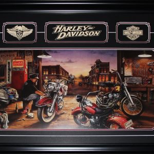 Ready to Rumble Harley Davidson Motorcycle by Dan Hatala Fine Art Print with Emblems Frame