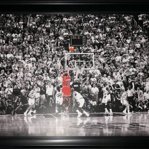 Michael Jordan Chicago Bulls “The Last Shot” Basketball Sports Memorabilia Collector 24 X 36 Textured Frame