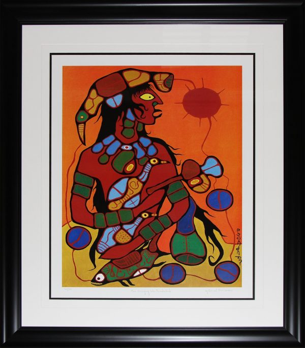 Indian hertiage art print entitled “Man Changing Into Thunderbird #1” by Norval Morrisseau. Comes matted and framed with Certificate of Authenticity.