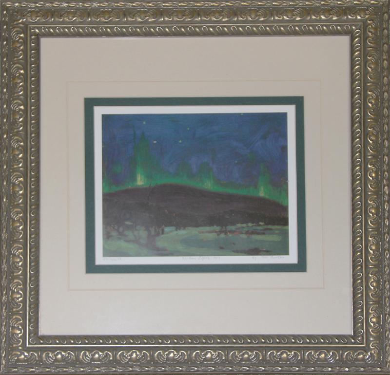 Reproduction Canadian art print entitled Northern Lights, 1917 by Tom Thomson, member of the Group of Seven. Comes deluxe framed with matting.
