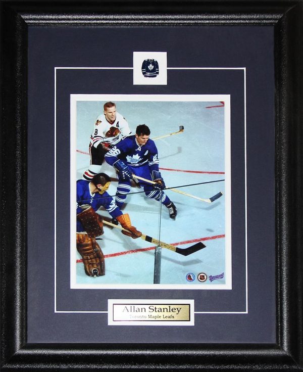 8×10 photograph featuring Allan Stanley on the Toronto Maple Leafs. Comes framed with matting, plaque, and collector pin.