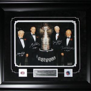 Henri Richard Guy Lafleur Jean Beliveau & Yvan Cournoyer Stanley Cup Signed 11×14 Hockey Frame
