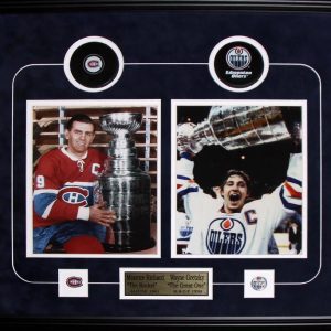 Maurice Richard & Wayne Gretzky 2 Photo puck NHL Hockey Collector Frame