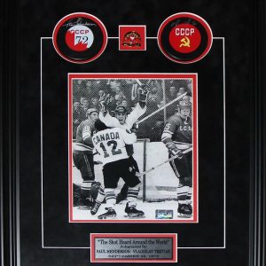 Paul Henderson & Vladislav Tretiak Team Canada & Russia Signed Pucks with 8×10 Frame