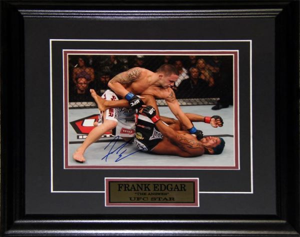8×10 signed photograph featuring UFC star Frank Edgar. Comes framed with matting, plaque, and Certificate of Authenticity.